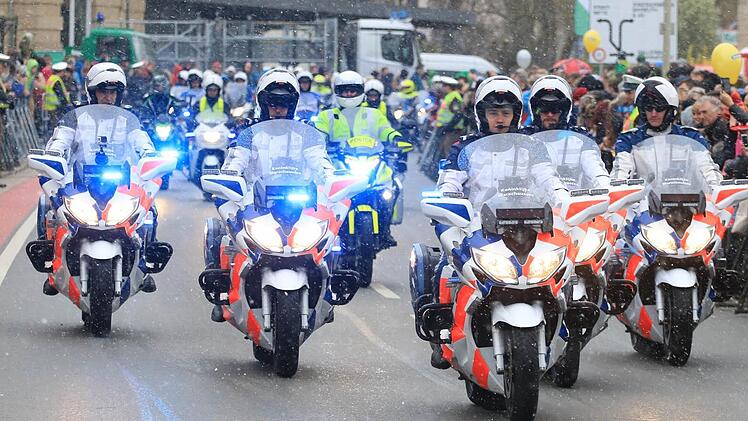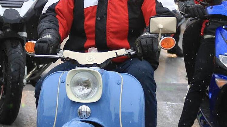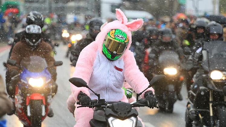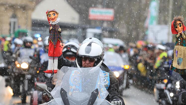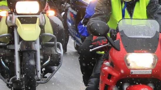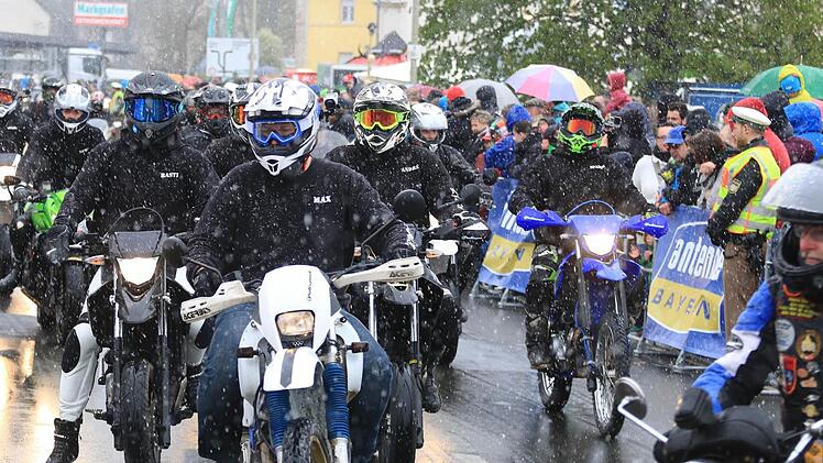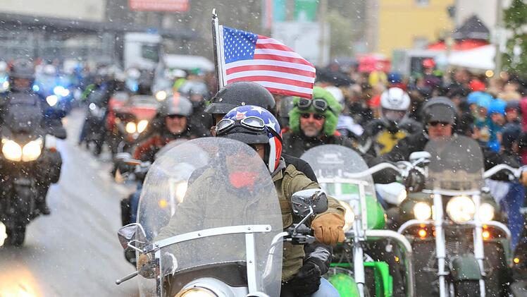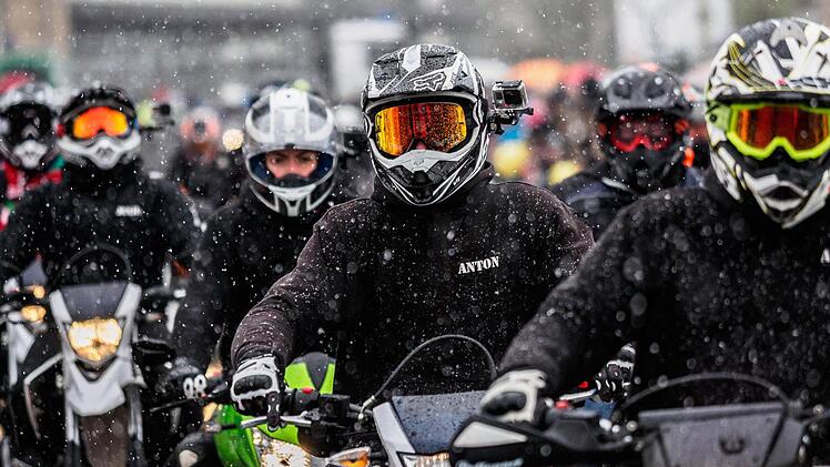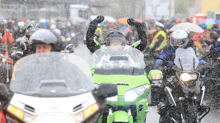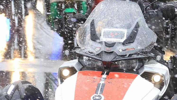 Premiere bei der 16. Motorrad-Sternfahrt in Kulmbach: Die Biker konnten beweisen, dass sie auch bei Schneefall sicher unterwegs sind.