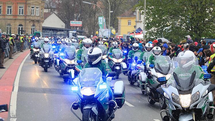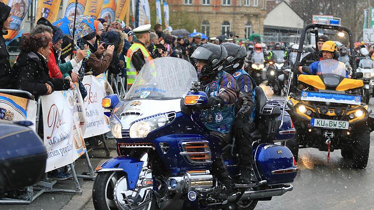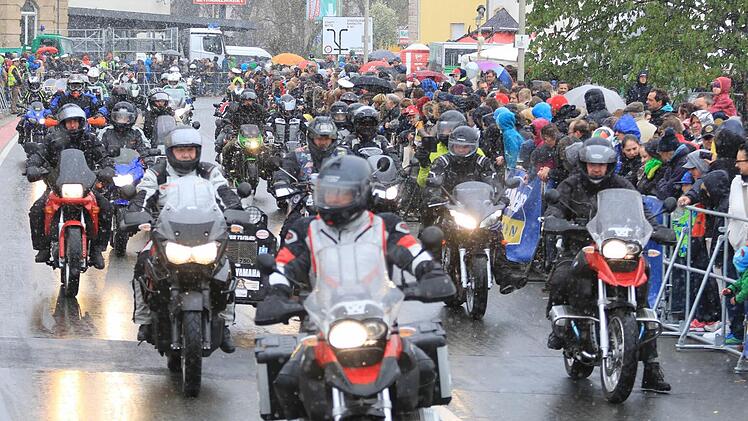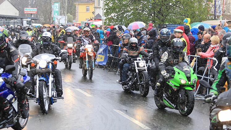 Wer gedacht hatte, dass sich angesichts des miesen Wetters nur wenige Motorradfahrer zur Sternfahrt nach Kulmbach verirren, sah sich getäuscht: Rund 1300 hartgesottene Biker starteten mittags in der Albert-Ruckdeschel-Straße zum Korso durch die Innenstadt. Während des ganzen Tages wurden sie bei maximal fünf Grad Celsius von Wetterkapriolen begleitet. Schien am Vormittag noch die Sonne, wurde die Stadt - pünktlich zum Korso - mittags von einem Schneeschauer erfasst, der eine Stunde später wieder strahlendem Sonnenschein wich.