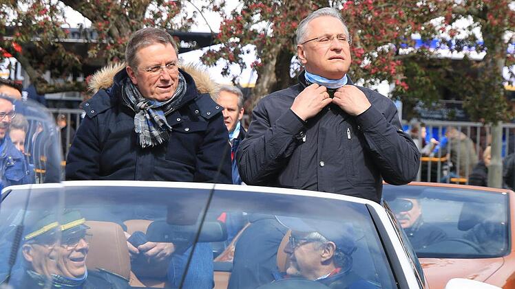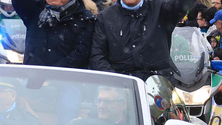 Für Minister und OB gelten halt doch andere Regeln, die dürfen hinten erhoben auf dem eingeklappten Cabriodach sitzen. Und das bei soviel anwesender Polizei. Prinz und Prinzessin dürfen das beim Faschingsumzug nicht! Landrartsamt/Ordnungamt wo bist du?