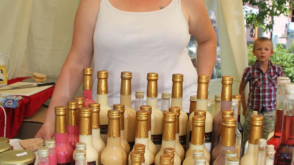 Silvana Pastohr indes stand an ihrem Eierlikör-Stand in der Sonne. "Durch den Alkohol macht die Hitze dem Eierlikör nichts."