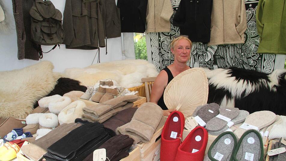 Flaute an der Socken-Front "Naja, es ist einfach zu heiß, um meine Sachen anzuprobieren", sagte Ulla Klinger. Sie harrte am Stand der Schäferei Frank aus und bot warme Schafwolle, Lodenjacken für den Winter und dicke Schafsfelle und Hausschuhe an.