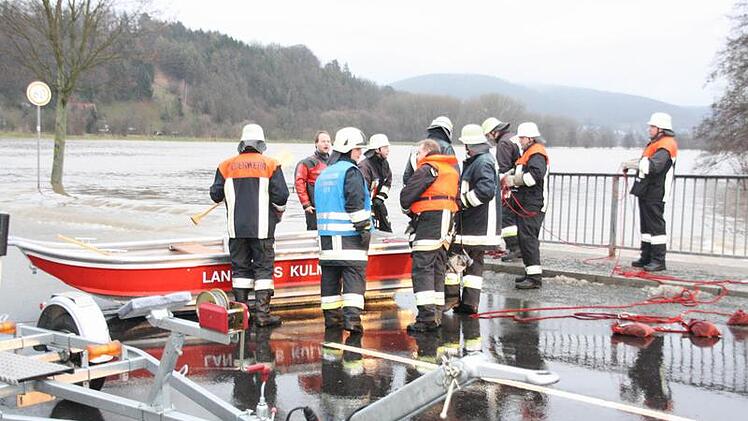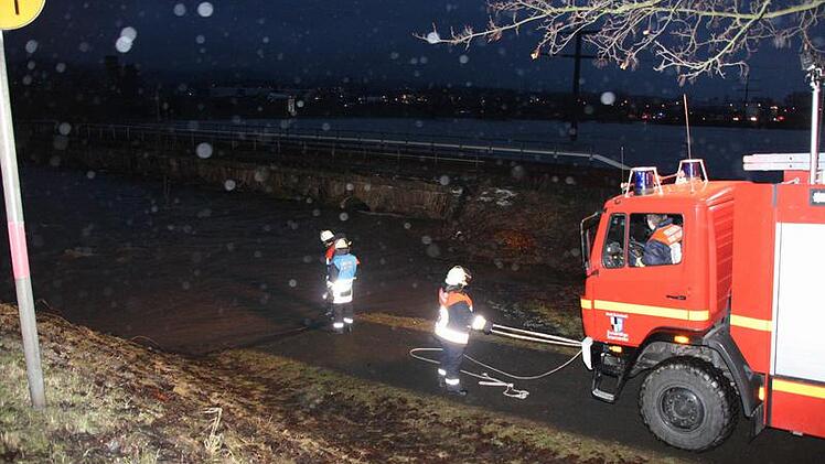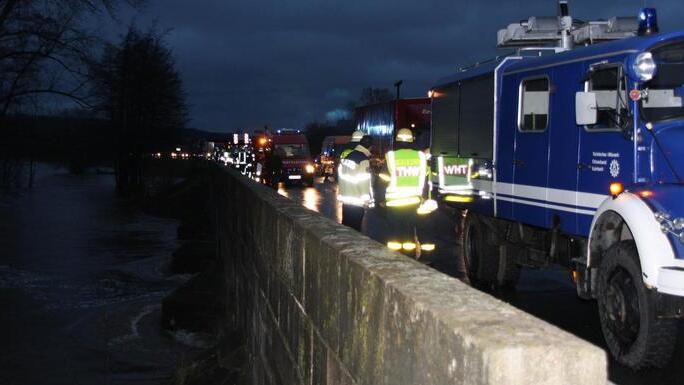 Dramatische Rettungsaktion im Morgengrauen: Bei Burghaig hat das Hochwasser ein Auto mitgerissen. Der Mann konnte sich unverletzt selbst retten. Eine Bergung des Autos war bislang noch nicht möglich.