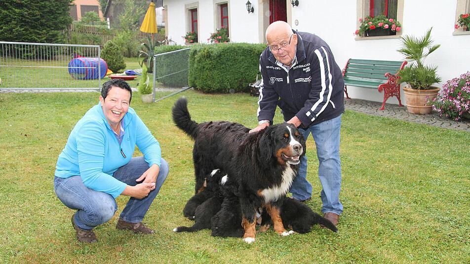 Zum ersten Mal haben Annett und Falk Walther in ihrem neuen Domizil bei Presseck Berner Sennenhund-Babys bekommen. Sieben drollige Welpen haben das Licht der Welt erblickt.