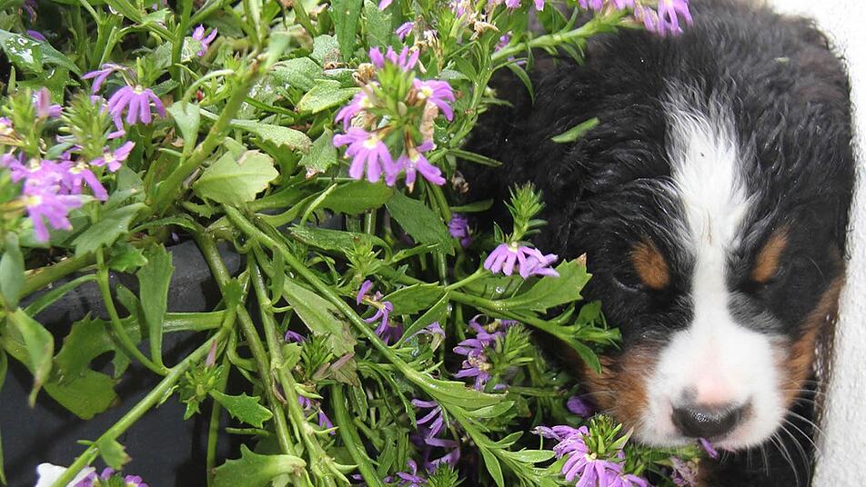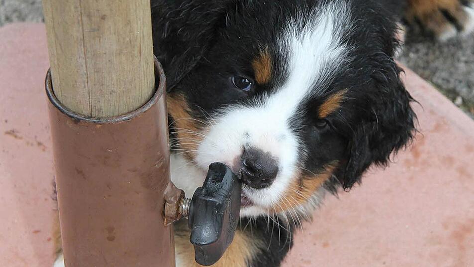 Derzeit haben die Hunde allerdings jede Menge Flausen im Kopf. Sie pflücken Blumen, plündern Blumenschalen, nagen mit ihren spitzen Zähnchen auch schon mal die Stellschrauben vom Sonnenschirm an oder verschleppen Gartenschuhe.