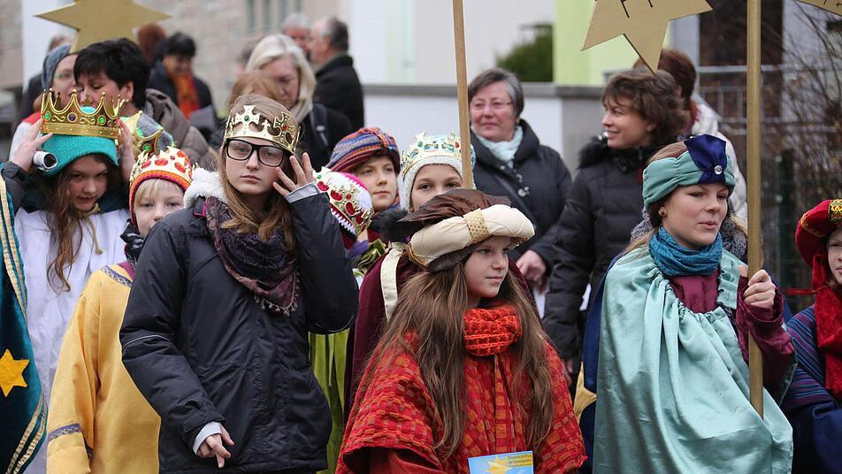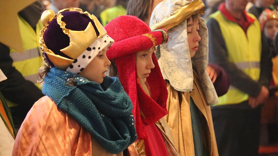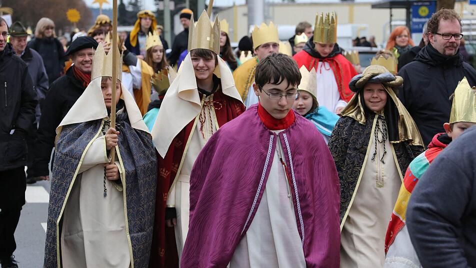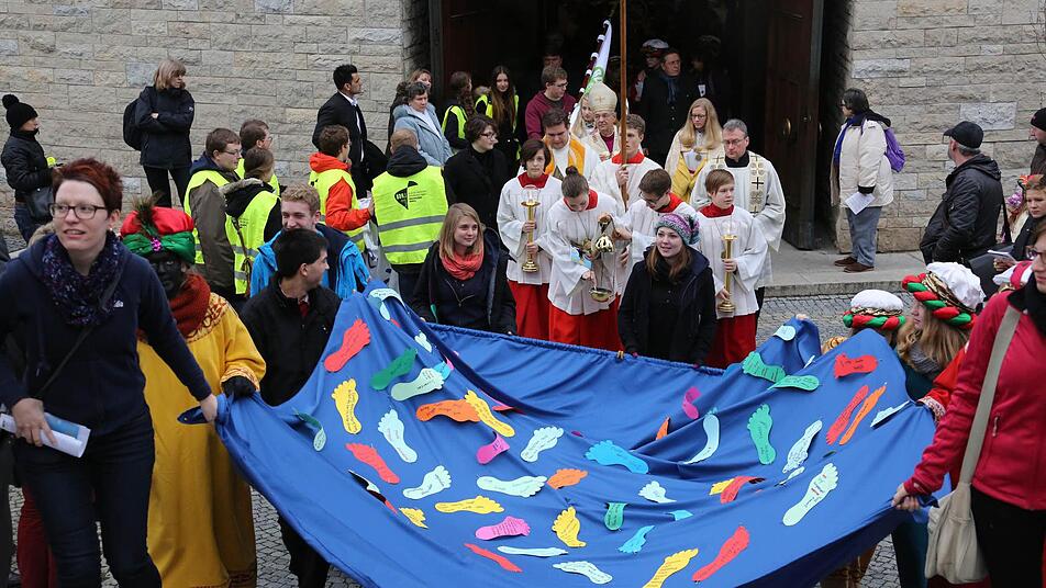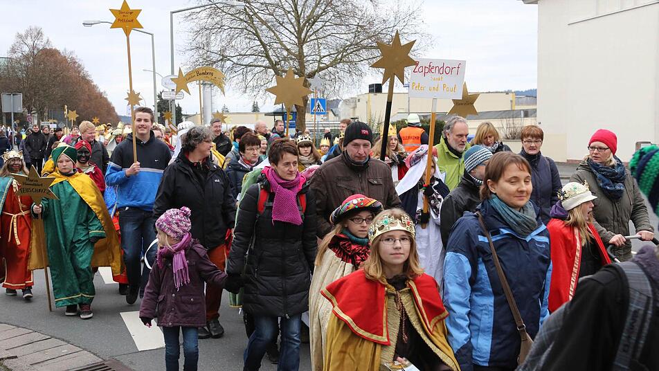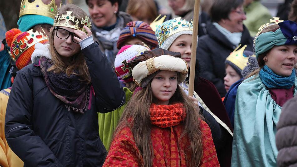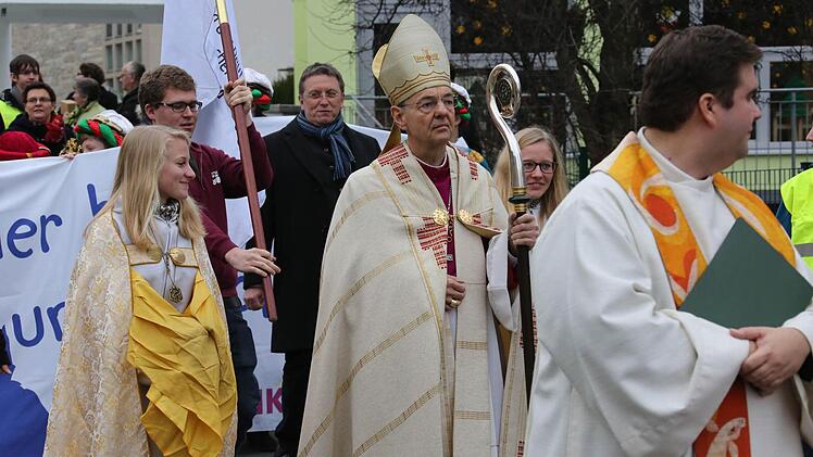 Erzbischof Ludwig Schick entsandte am Montag 385 Gruppen aus dem Erzbistum Bamberg zum Spendensammeln. Die kleinen Könige und Weisen marschierten in einem Festzug von St. Hedwig durch die ganze Stadt bis zur Kirche "Unsere Liebe Frau".