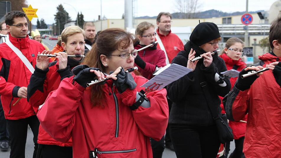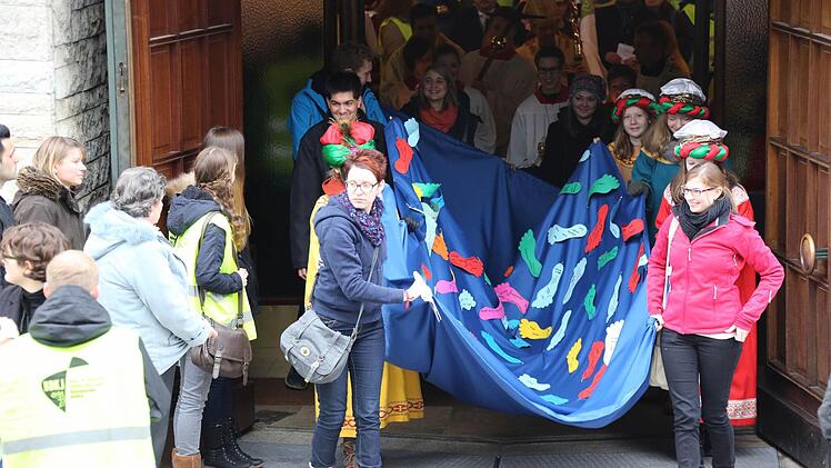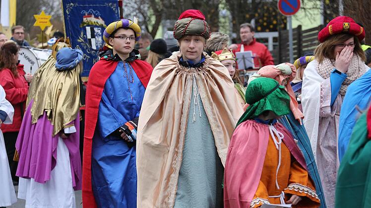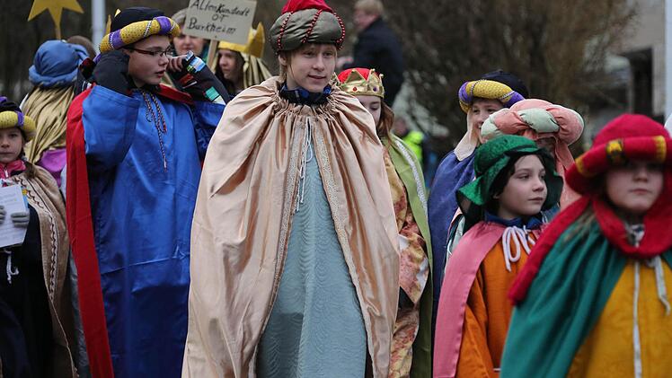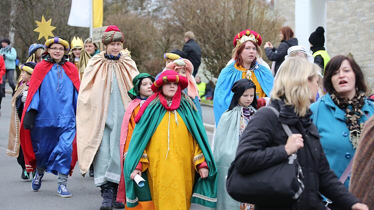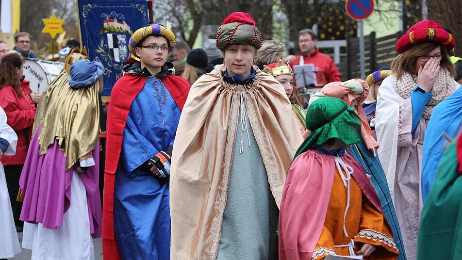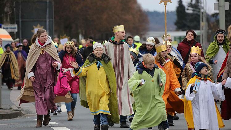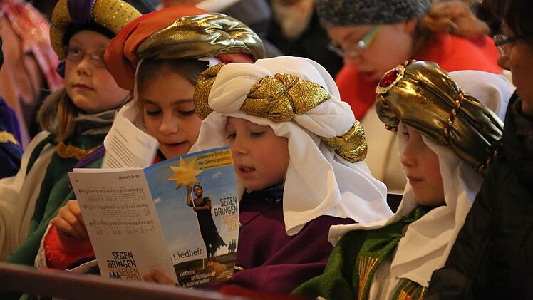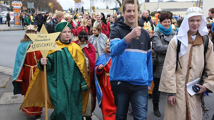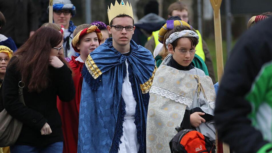 Erzbischof Ludwig Schick entsandte am Montag 385 Gruppen aus dem Erzbistum Bamberg zum Spendensammeln. Die kleinen Könige und Weisen marschierten in einem Festzug von St. Hedwig durch die ganze Stadt bis zur Kirche "Unsere Liebe Frau".