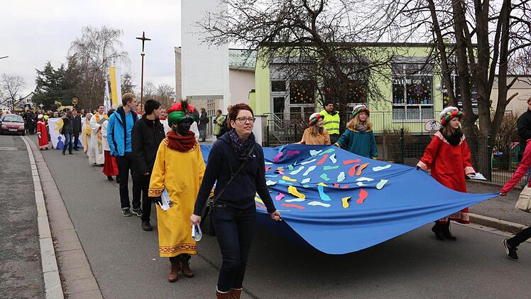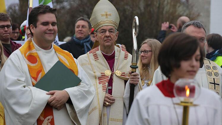 Dass Kulmbach für die Aussendung auserwählt wurde, freute Oberbürgermeister Henry Schramm: "Das ist eine Ehre und Auszeichnung." Zusammen mit Landrat Klaus Peter Söllner nahm er am großen Festzug teil, der zu den Klängen des Markgrafen Spielmannszugs von St. Hedwig durch die Stadt und die Fußgängerzone zur Kirche "Unsere Liebe Frau" führte, wo noch ein Gottesdienst mit dem Erzbischof stattfand.