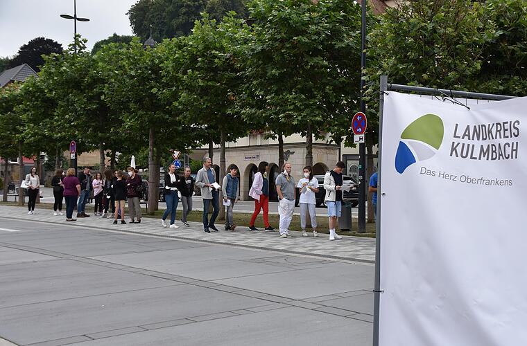 Bereits ab 7 Uhr morgens standen die Impfwilligen am Samstag am Kulmbacher Eku-Platz, um sich im mobilen Impfzentrum des Landkreises ihre Erstimpfung gegen Covid-19 verabreichen zu lassen. "Wir waren total überrascht vom Ansturm. Um 7.30 Uhr haben wir schon 35 Leute gezählt", sagte der Leiter des Impfzentrums, Marcel Hocquel, und führte an: "Alle haben sich positiv geäußert, nach dem Motto: ,Schön, dass der Impfstoff zu uns kommt'." Das ging ohne Terminvereinbarung. Eine halbe Stunde standen die Interessierten im Durchschnitt an, bis sie in eine der beiden Impfkabinen schlüpfen konnten.
