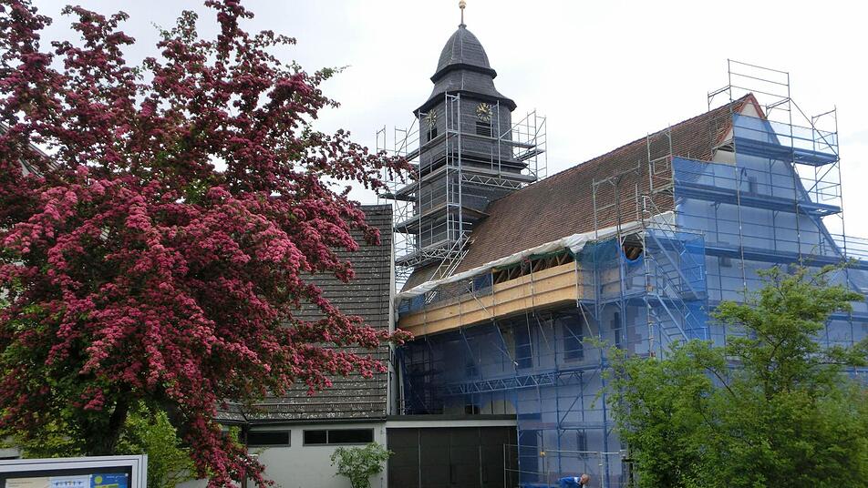 Trotz Baustelle müssen die Gläubigen auf den Kirchgang nicht verzichten. Die Gottesdienste finden jetzt alle in der neuen Kirche statt. Auch das wohlvertraute Glockengeläut und der Viertelstundenschlag sind weiterhin zu hören. Zumindest noch für längere Zeit. Schließlich wird erst die Dachkonstruktion des Kirchenschiffes instand gesetzt, bevor die Firma Eber aus Kulmbach die neuen Biberschwanzziegel aufbringt. Zum Schluss ist die komplette Sanierung der Turmfassade an der Reihe. Vorgesehen ist auch der Austausch der Glockenaufhängung. Flachstahlbänder sollen zur Sicherung eingebaut werden. Mit dem Abschluss der Arbeiten ist Franz Frosch zufolge Ende des Jahres zu rechnen.