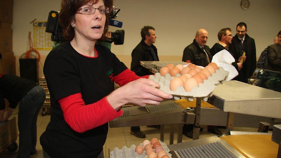 Mehr als 350.000 Euro hat der Kasendorfer Unternehmer Hans-Peter Kolb für eine Eisersortiermaschine investiert: Mit Hilfe modernster Kameratechnik kann die Maschine 36.000 Eier pro Stunde nach Güte, Gewicht, Klasse und Farbe sortieren und in entsprechende Kartons verpacken.