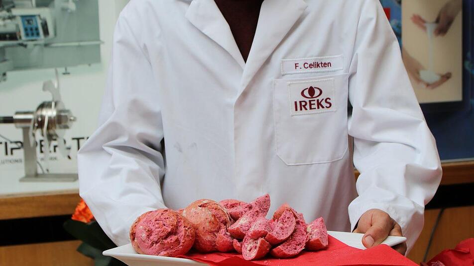 Die Idee brachte ein Kollege ins Spiel, Inspiration war der Rosengarten der Oma. Die Farbe bekommen die Backwaren durch einen organischen Farbstoff, Karmin. Der Kulmbacher Ferhat Celikten gibt auch gleich noch Serviertipps: "Das ist doch eine super Idee zum Valentinstag oder als Partygag."