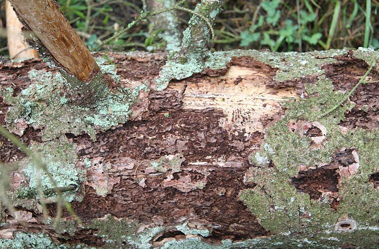 Jetzt in den Wintermonaten haben Waldbesitzer die Pflicht, mindestens ein Mal pro Monat ihre Waldbesitzungen auf Borkenkäferbefall abzusuchen, relativ gut erkennbar an rötlich verfärbten Wipfeln und Rinden mit eindeutigen Einbohrspuren. Ab April ist sogar eine zweimalige Kontrolle im Monat vorgeschrieben.