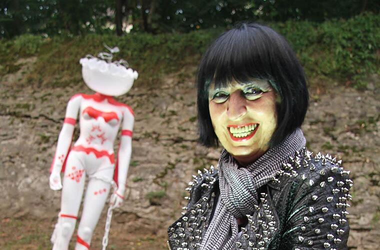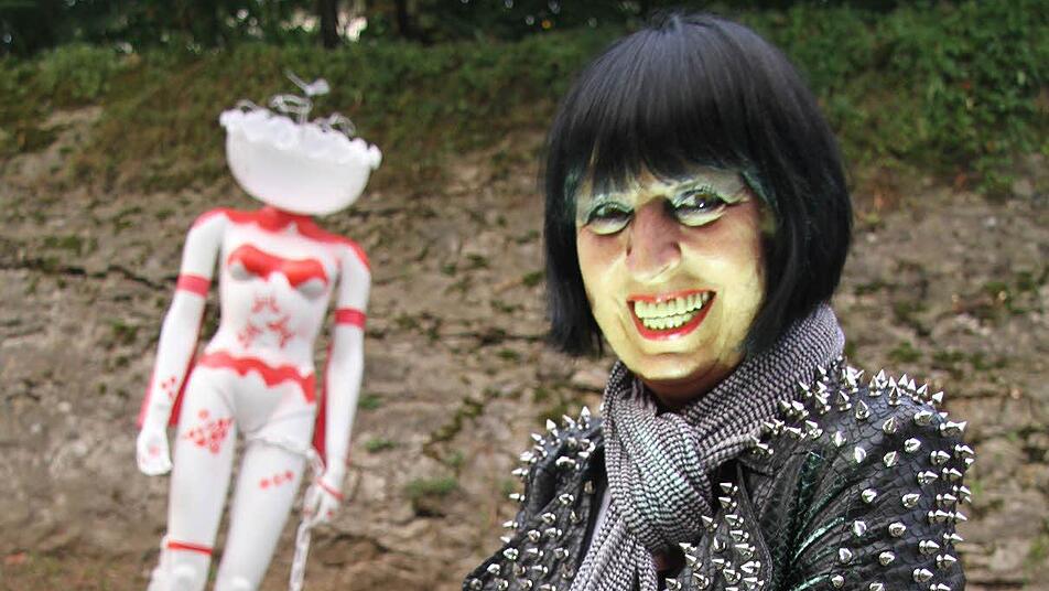 Auch die Elbersreuther Künstlerin Edina Thern möchte zum Nachdenken anregen: Sie hat eine Schaufensterpuppe mit Filmdöschen bekleidet und ihr Werk "Eitelkeit" genannt. Kein Zufall, denn schließlich wird durch Fotos doch die Eitelkeit gefördert.