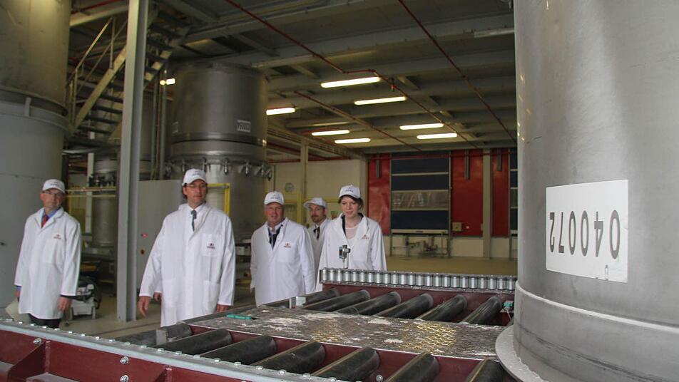 Vollautomatisch dreht sich ein gigantischer Stahlbehälter in der Luft und mischt auf diese Art und Weise zwei Mal 2,5 Tonnen Rohstoffe. Dann wird der Stahlbehälter auf einem ebenfalls automatisch gesteuerten Wagen, der so ganz und gar nichts mehr mit einem Hubwagen gemein hat, zur nächsten Station weiterbefördert. "Jeder Arbeitsschritt wird genau dokumentiert", erklärt Werkleiter Detlef Topp und zeigt der CSU-Abordnung, wie die Produkte bei Ireks hergestellt werden.