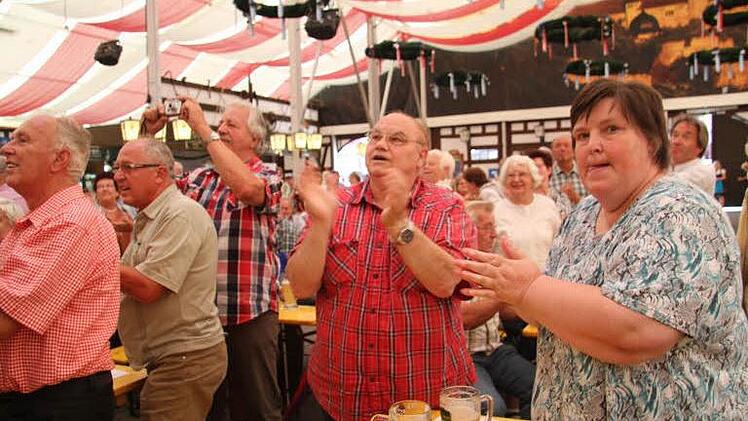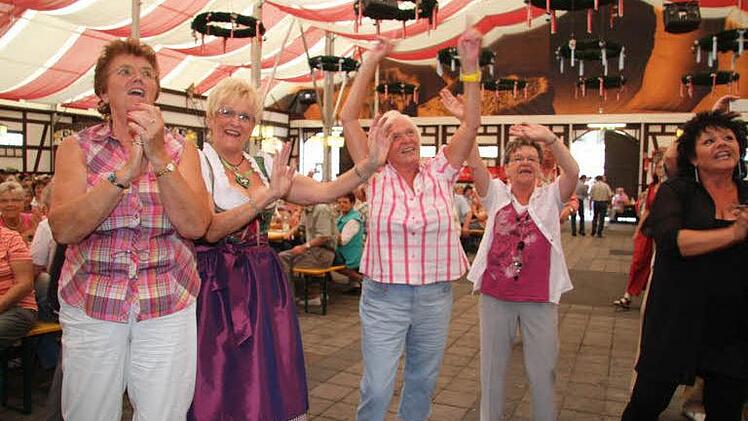 Beim "Tag der Generationen" am heutigen Dienstag herrschte schon am Tag drangvolle Enge im Zelt. Als dann die Stargäste auf die Bühne traten, kochte die Stimmung.