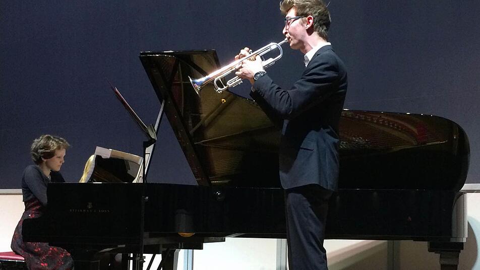 Die beiden zeigten gleich bei zwei Stücken ihr Können - mit "Tempo giusto" von Adam Falkenhagen und mit "Pretencioso" von Alfredo Vianna. Ein wirklich hörenswertes Stück haben sich außerdem Julian Neubrand (Trompete) und Laura Meile (Klavier) ausgesucht. Die beiden musizierten eine Romance und ein Scherzo von Thorvald Hansen und begeisterten durch ein harmonisches Zusammenspiel.