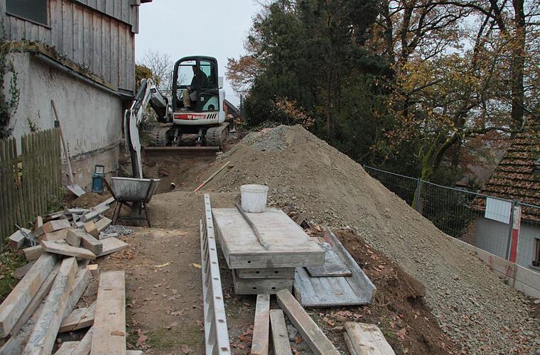 Ingenieur-Büro gefordert." Neben der Enge der Baustelle sei auch das steil abfallende Gelände eine Herausforderung. Gegenüber der Scheune von Dietmar Laude werde deshalb sogar eine Stützmauer errichtet, um die Rohre dort verlegen zu können.