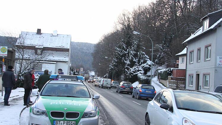 Immer noch schieben sich Autos, Busse und Lastwagen Stoßstange an Stoßstange durch den Ort. Der Stau reicht mittlerweile weit zurück: Bis auf die Nordumgehung in Richtung Kulmbach, in der Gegenrichtung bis Untersteinach. Manche Fahrer identifizieren die Menschengruppe an der Bushaltestelle als eine Art Demonstration - und winken zustimmend. Andere sind sichtlich genervt.