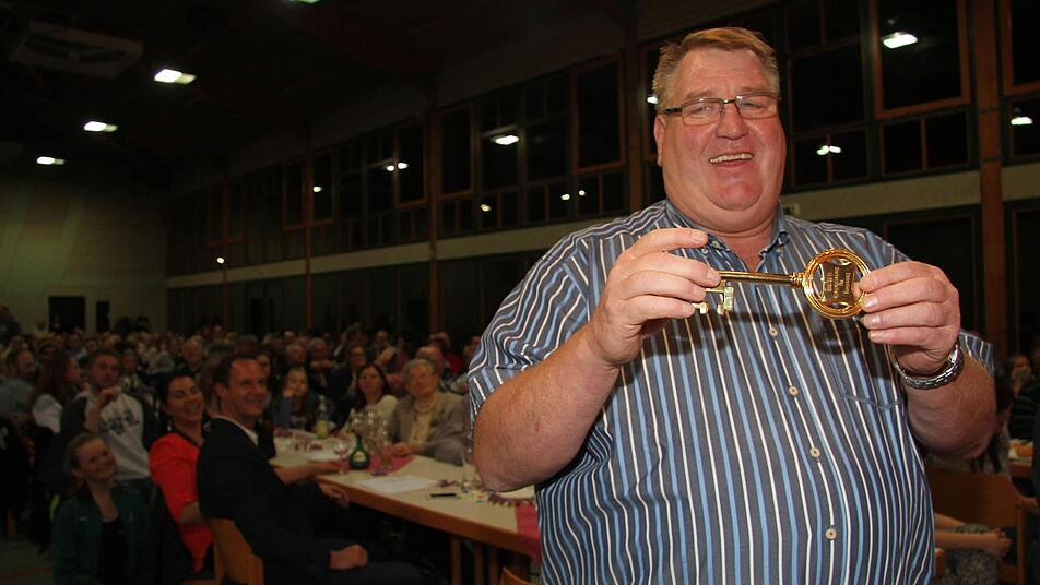 Stadtrat Wolfgang Heiß, der in diesem Jahr den goldenen Schlüssel bewachte, wollte diesen nach den Bühnen-Wettbewerben noch immer nicht den Narren überlassen. Kurzerhand hob der Elferrat den schwergewichtigen Kommunalpolitiker hoch. "Wenn ich das gewusst hätte, hätte ich vorher noch was gegessen", witzelte Heiß. Doch letztlich fiel der Schlüssel dann doch in die Hände der Narren. Die Session hat begonnen, Stadtsteinach wird wieder zur Faschingshochburg.