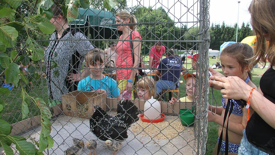 Höhepunkte des Kindertages waren der Ballonwettbewerb und die kleine Schau des Kleintierzuchtverein s. Helmut Ulbrich hatte eigens ein Bantam-Hühnchen brüten lassen und präsentierte die Glucke samt ihren vorwitzigen Küken. Aber auch einen Widder-Hasen mit Hängeohren und Tauben zeigten sich im Freibad und fanden sogleich ihre Liebhaber.