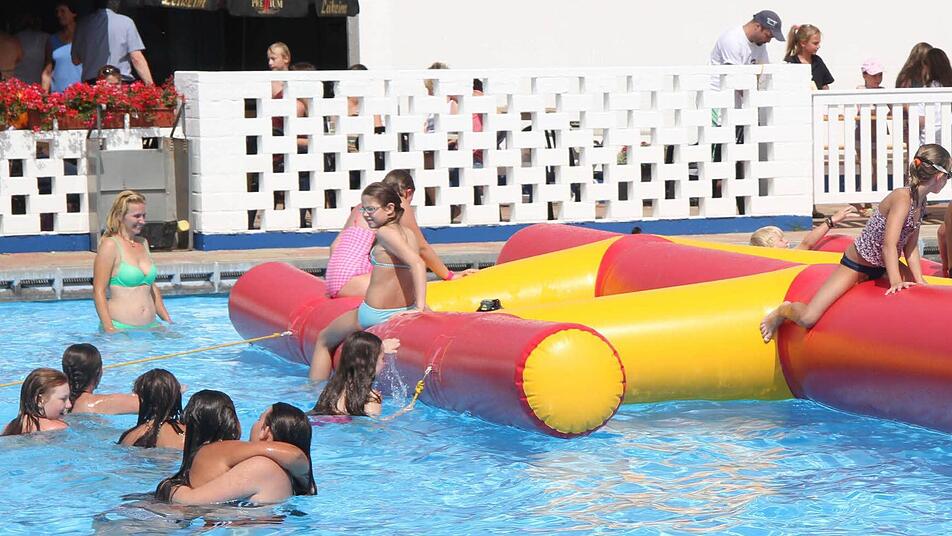Im Schwimmbecken vergnügten sich die Kleinen und schon etwas Größeren mit der Riesenkrake und anderen Spielgeräten - oder die Kids ließen sich vom Wasserpilz erfrischen.