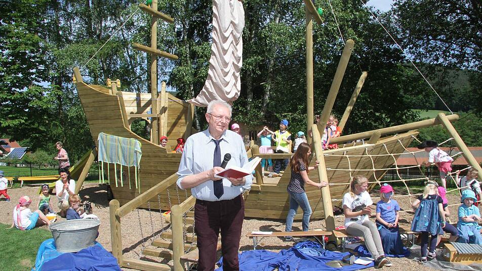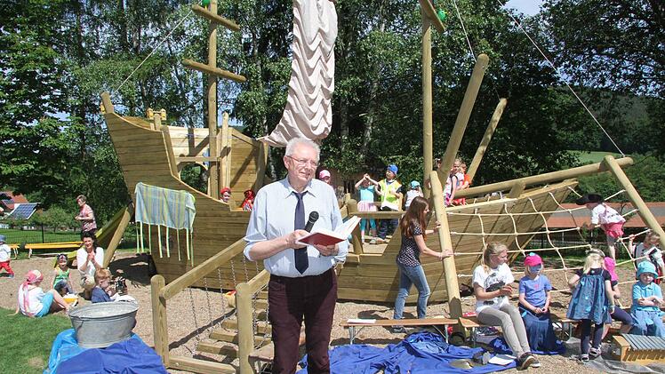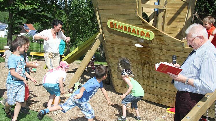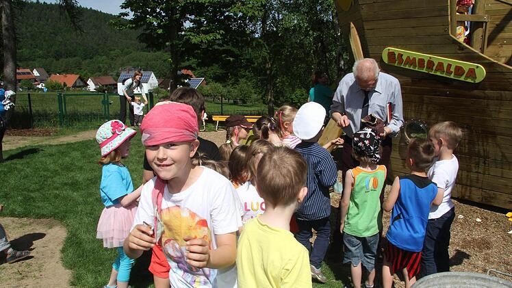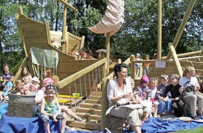 Tatsächlich hat sich der Kindergartenverein die Neugestaltung 55 000 Euro kosten lassen. Eine Nestschaukel und eine Wippe, ein Schwebebalken sind aufgebaut worden, doch das Prunkstück des Kindergarten-Gartens ist ein riesiges Schiff namens Esmeralda.
