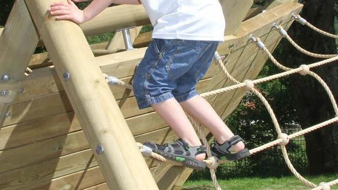 Dort können sich die Kinder verstecken. Sie können es über eine Wackelbrücke oder über ein Klettergerüst betreten. Das Schiff hat ein stolzes Segel und eine integrierte Rutsche für die, die ganz schnell wieder an Land möchten.