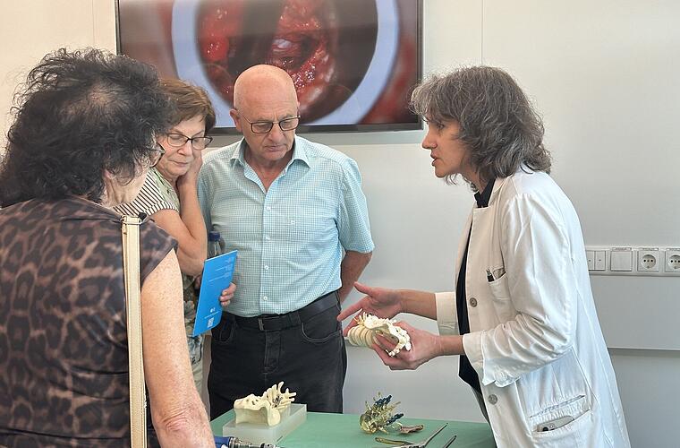 An zahlreichen Stellen zeigten Fachabteilungen Auszüge aus ihrem Arbeitsfeld. Am Stand der Fachklinik in Stadtsteinach beispielsweise konnten die Gäste anhand von speziellen Handschuhen, Brillen oder sogar einem Prothesensimulator selbst ausprobieren, wie es ist, wenn man ein Handicap hat oder unter Parkinson leidet. Bei der Hand- und Plastischen Chirurgie, die sehr oft mit ganz feinen Nähten arbeitet, konnten sich die Besucher selbst ein Bild machen, wie man mit Hilfe eines Mikroskops eine Naht setzt – natürlich nicht am lebenden Objekt, sondern an Stofftieren. Die Apotheke stellte ihr Arbeitsumfeld vor. Führungen gab es durch die Radiologie und das Labor. Jeder Fachbereich war vertreten.