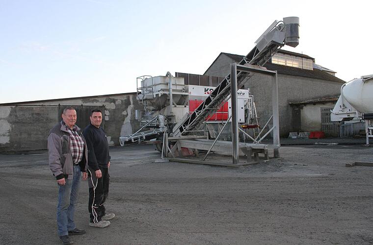 Die Firma P+R hat aktuell 14 Beschäftigte. Zum Fuhrpark gehören 14 Laster, ein Hubsteiger, ein Bagger, eine Kehrmaschine, eine Radlader und eine mobile Betonmaschine mit Förderband. "Wir haben mit den Baufirmen aus der Gegend zum Glück langfristige Verträge. Und die Betonmischanlage ist auch schon vorgebucht. Aber erst brauchen wir sie einmal hier", sagt Röttgen und krempelt die Ärmel hoch. Denn auf dem riesigen Gelände gibt es noch viel zu tun.