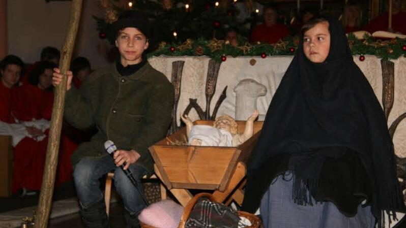 Auch in der evangelischen Kirche in Rugendorf betteten die Kinder ihr klassisches Krippenspiel in eine zeitkritischen Ansatz ein. "Uns kommt es darauf an, zu zeigen, was Weihnachten wirklich ist. Denn es ist mehr als nur Stress und Hektik", erklärt Pfarrer Wolfgang Oertel in seiner Predigt. Oertel wies auf die Sensibilität der Zeit ein, auf die Verletzungen, die damit einhergehen können. Tatsächlich allerdings erlebt das eine Hausfrau ganz anders. Sie muss noch putzen, den Weihnachtsbaum aufstellen. Da bleibt keine Zeit, um sich das Krippenspiel des Kindergartens, bei dem der eigene Sohn mitmacht, anzuschauen. Und so richtig Sinn für die Botschaft hinter Weihnachten hat die Frau auch nicht. Doch 17 Kinder machten die Geschichte in Rugendorf lebendig. Zum ersten Mal waren nicht nur Jungscharkinder dabei, sondern schon Vier- und Fünfjährige standen auf der Bühne.