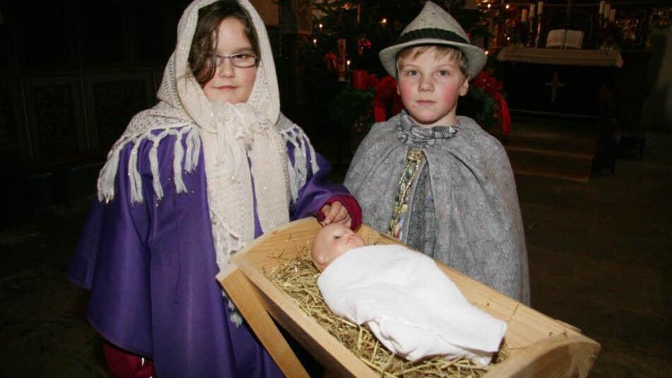 In der Pfarrkirche Unserer Liebe Frau in Kulmbach proben die Kommunionskinder, die in diesem Frühling die Erstkommunion empfangen haben, unter der Regie von Gabriele Hahn und Jasmin Fraas seit drei Wochen für ihren großen Auftritt an Heiligabend. Doch der Auftritt in den Kostümen ist an Heiligabend immer eine Premiere. So ist es in der Pfarrkirche "Unsere Liebe Frau" und bei Pfarrer Georg Ochsenkühn seit vielen Jahren Brauch. Eigentlich boten die Kommunionskinder ein klassisches Krippenspiel dar. Doch die Handlung der altbekannten Geschichte fügte sich in eine Unterhaltung von Opa Josef Müller (74) und Enkelin Emely Rohdecker (8) ein.