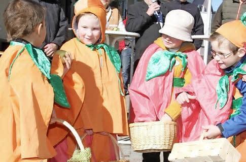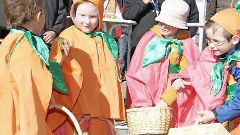 Wenn in Presseck am Tag der Deutschen Einheit das Fest "Kürbis im Park" steigt, dann macht sich unter den Vorschulkindern des Kindergartens Aufregung breit. Lukas Hofmann (5), André Aneurin (6), Leon Oswald (5) und Julian Riese (5) waren diesmal als Kürbiswichtel auserkoren worden. Sie schlüpften in die leuchtend orangeroten Kostüme. "Als Kürbiswichtel muss man Äpfel verschenken", sagte Lukas Hofmann . Er war sich seiner großen Aufgabe voll bewusst. Noch während Bürgermeister Siegfried Beyer und die Vorsitzende des Gartenbau- und Ortsverschönerungsvereins, Nelli Döppmann, den Markt eröffneten, testeten die Wichtel die Äpfel schon mal selbst.Während der Posaunenchor spielte, walteten die Kürbiswichtel ihres Amtes und verschenkten Äpfel an große und kleine Besucher.