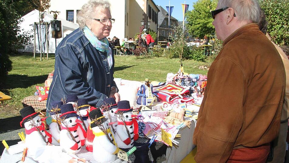 Zwölf Stände Bei herrlichem Herbstwetter kamen viele zu dem Markt der besonderen Art. Zwölf Stände waren aufgebaut. So gab es in diesem Jahr Dekostände. Irene Ziegler hatte frische Küchla und selbstgemachte Marmeladen-Spezialitäten dabei. Die Angebotspalette reichte von Kartoffeln aus der Region über Obst und Gemüse bis hin zu Fisch und Räucherkäse. Imker Stefan Feulner bot Akazienhonig und Tannenhonig an. Der Strickkreis Grafengehaig präsentierte allerlei Winterliches.