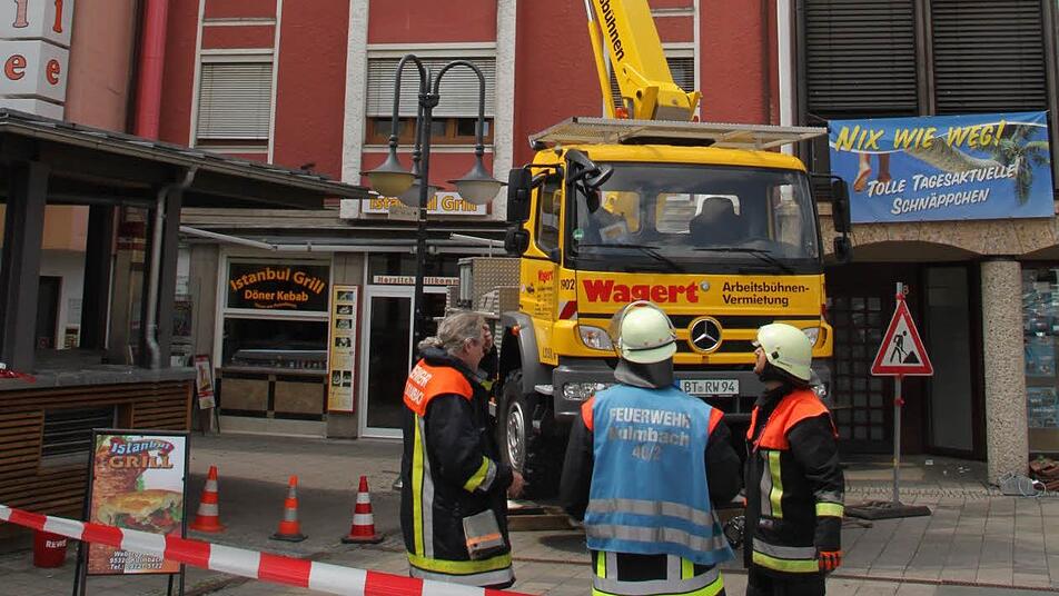 Es ist Dienstag kurz nach 14 Uhr, als sich das Unglück ereignet: Auf dem Dach des Anwesens Webergasse 6 wird an einer Entlüftungsanlage gearbeitet. Plötzlich explodiert aus bislang unbekannten Gründen eine knapp 50 Zentimeter hohe Gasflasche. Ein Mann wird dabei schwer verletzt.