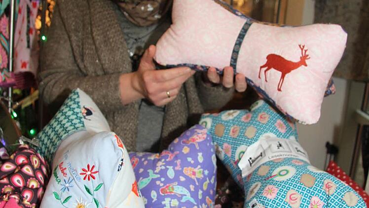 Ebenfalls eine echte Marktlücke hat Michaela Dörnhöfer aufgetan: Sie präsentierte an ihrem Nähstand Leseknochen. Dabei handelte es sich um eine Mischung aus Nackenrollen und Kissen - in Knochenform. Und die Geschenke-Jäger fanden die Idee einfach toll - zumal es die Leseknochen auch bestickt gibt.
