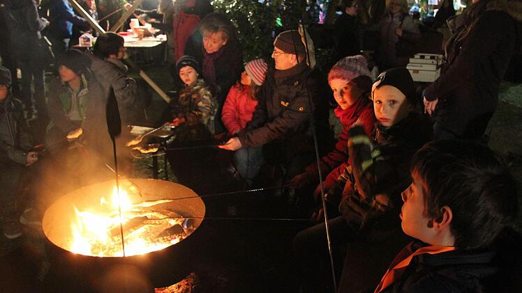 Auch der Weihnachtsmarkt bei der Pfarrkirche "Unsere Liebe Frau" rund um die Alte Villa der Geschwister-Gummi-Stiftung war ein Publikumsmagnet. Es gab ein Hexenhäuschen mit Leckereien und eine lebende Krippe. Große und Kleine wärmten sich beim Stockbrotfeuer auf. Und natürlich gab es auch wieder Kartoffeln am Spieß und Wienerle vom Würschdlesmo auf dem Fahrrad.