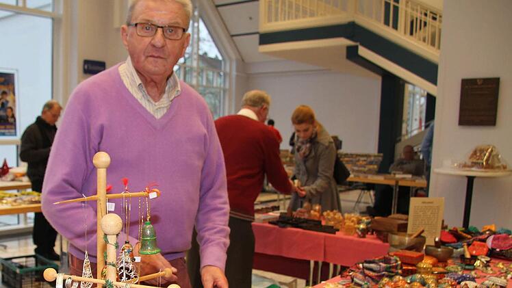 Im Martin-Luther-Haus gab es Handgemachtes: Genähtes, Gesägtes und jede Menge Kreationen aus Stoff und Wolle. Bernt Pingel hat wieder einen Stand mit hochwertigen Tiffany-Arbeiten aufgebaut, Mathilde Wamser zarte Papiersterne gebastelt. Eine ganz neue Idee präsentierte Anita Hofmann im Martin-Luther-Haus: Sie funktionierte alte Brokatdeckchen zu Kleiderbügel-Schützern um und hat Tassen mit Fettvogelfutter gefüllt. "Ich habe schon einiges verkauft. Das kommt gut an", zog sie Bilanz.