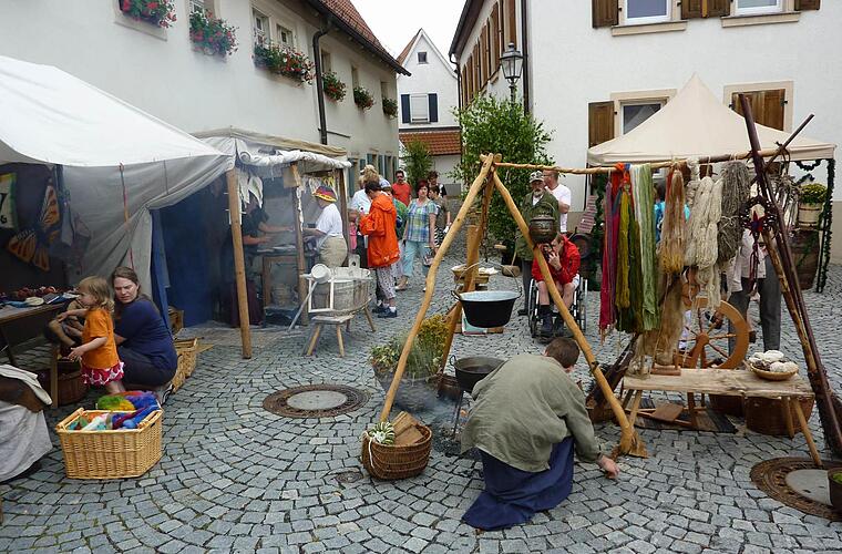 Außerdem gibt es viele Mitmachstationen, bei denen Kinder und Erwachsene zeigen können, wie geschickt und fingerfertig sie sind. Natürlich darf auch die mittelalterliche Kost nicht fehlen: Ein Humpen Bier oder Met sowie eine deftige Suppe - über offenem Feuer gekocht - lassen echtes Ritter-Feeling aufkommen.