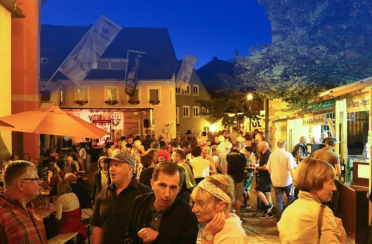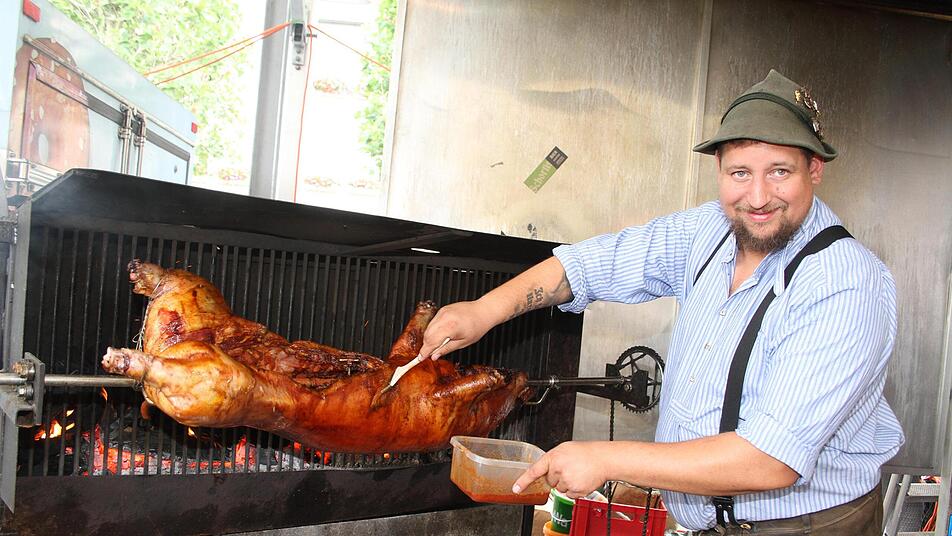 Doch wie lief das Geschäft für die Spezialitätenstände? Matthias Krammhöller alias "WuiderA" brutzelte ein ganzes Schwein und bot Wildspezialitäten an. "Also nachmittags ist der Besuch schon schwach. Ich dachte auch, dass ich mitten in der Stadt bin und nicht so am Rande. Wenn ich nächstes Jahr wiederkomme, möchte ich lieber auf dem Marktplatz sein", gestand er. Doch am Abend fanden seine Weideschwein-Spezialitäten, Burger und Hirsch-Cevapcici reißenden Absatz - genau wie andere kulinarische Angebote: Holzofenpizza, Donuts, Spieße und vieles mehr. "Die Leute kommen bei so heißen Temperaturen erst nach 19 Uhr. Aber die Stimmung ist gut", sagte der Zentralparkplatz-Verantwortliche Klaus Paetsch.