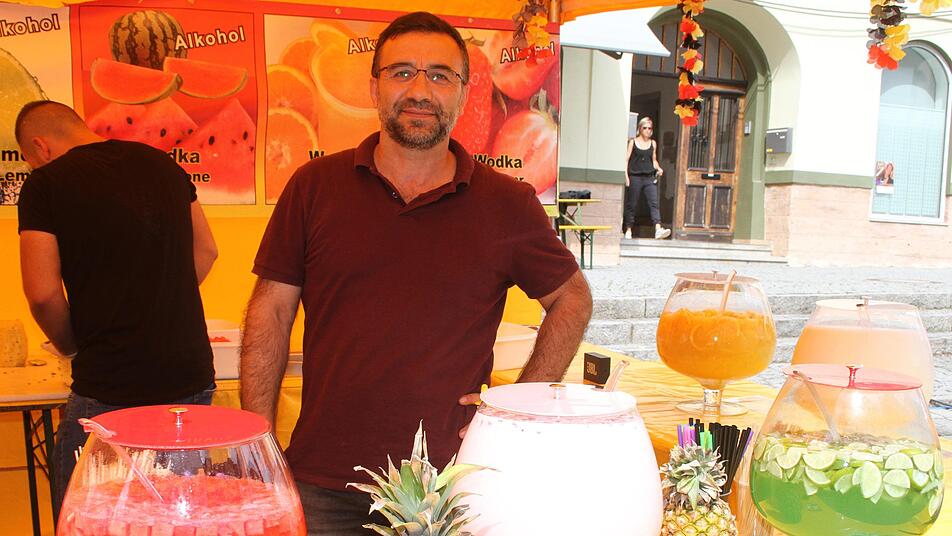 Auch in den anderen Feiermeilen rund um die Innenstadt herrschte nachmittags Flaute. Mehmet Uldan in der Oberen Stadt nutzte die Zeit, um Erdbeeren, Melonen und Co. für seine kunterbunten Bowlen zu schnippeln. "Am Abend griffen die Kulmbacher auch hier gerne zu.