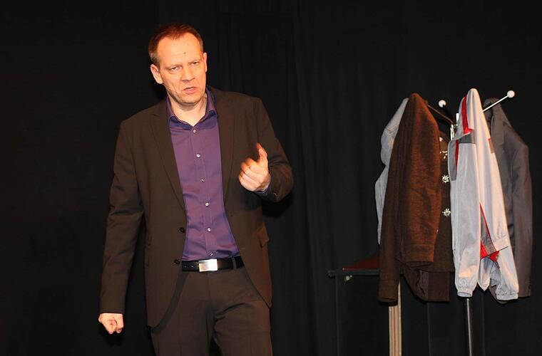 Ohne große Verkleidung und Ausstattung bot er einfach politisches Kabarett: rotzfrech, ohne Rücksicht auf Autoritäten und Empfindlichkeiten, ohne Rücksicht auf Parteizugehörigkeit, pointiert und leider meistens allzu wahr. Ob die GroKo oder die FDP, ob Philipp Rösler oder die "Truppen-Uschi", wie er Ursula von der Leyen titulierte und natürlich "Mutti Merkel", jeder bekam sein Fett weg. Und Schreckenberger entpuppte sich als Meister-Imitator. Denn er konnte sie alle nachmachen - ob Merkel oder Pofalla, ob Schröder oder Marcel-Reich-Ranicki, ob Udo Lindenberg oder Günter Netzer.