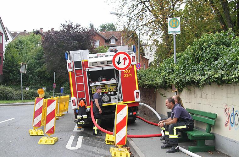 Und weil die Szene an einem stürmischen, regnerischen Tag spielte, musste die Freiwillige Feuerwehr Kulmbach das Filmteam mehrere Stunden lang mit Wasser versorgen. "Künstlicher Regen war Bestandteil des Drehs. Mit kurzen Pausen mussten über neun Stunden rund 40 000 Liter Wasser eingespeist werden", schreibt die Feuerwehr in ihrem Einsatzbericht. Drei Feuerwehrleute und ein Fahrzeug waren für den Film angefordert, bei dem auch die Schauspieler Emily Watson und Colin Firth mitwirken.