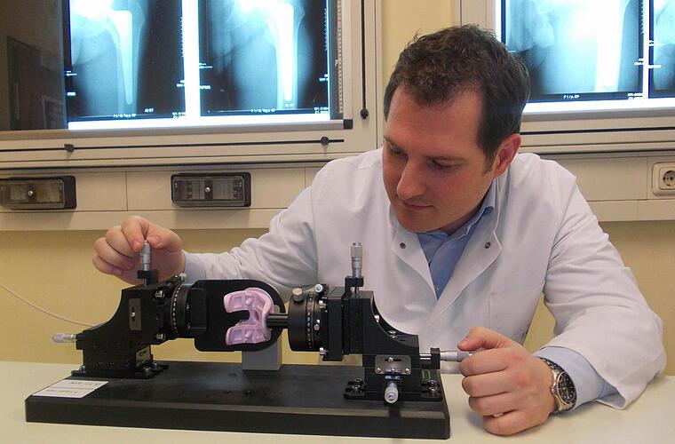 Über eine 3D-Computer-Software können dann Verschiebungen eines künstlichen Gelenks im Mikrometer-Bereich festgestellt werden. "Und das, bevor ein Patient Beschwerden hat oder etwas auf einem normalen Röntgenbild zu sehen ist", erklärt der 35-Jährige den großen Vorteil.
