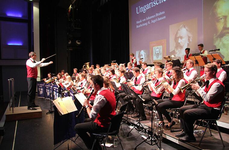 Doch auch völlig andere Töne beherrschen die jungen Leute. So interpretierten sie den ungarischen Tanz Nr. 5, den Johannes Brahms ursprünglich für das Klavier komponiert hatte. Die Bläser steigerten sich zu atemberaubenden Tempi und überzeugten das Publikum voll.