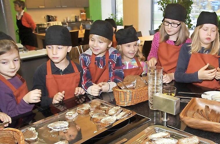 Zum Start der Kulmbacher Juniorakademie im Mönchshof testeten 35 Kinder die Möglichkeiten im Mupäz. Während die Erwachsenen über gesunde Ernährung diskutierten, widmete sich der Nachwuchs der Praxis und bereitete leckere Häppchen für die Gäste zu.