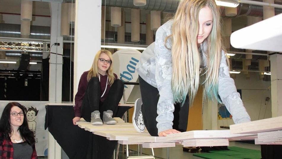 "Gute Sache, macht Spaß", meinen Layla Jahreis und Emelie Beitlich aus Neuenmarkt. Die beiden zwölfjährigen Mädchen probieren am Freitag jede Station im Kletterpark aus: die Bolderwand, den schwebenden Balken, die Wackelplatte oder das Klettertau. Am Vormittag ist die Ganztagsklasse der Oberen Schule mit ihrer Lehrerin Marion Hofmann da gewesen. "Denen hat's auch super gefallen", berichtet Meyer.