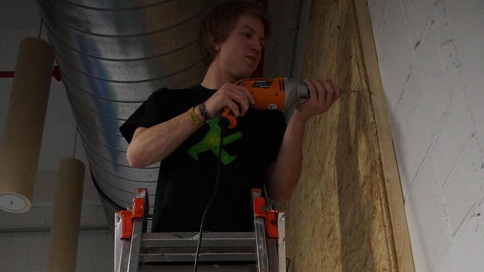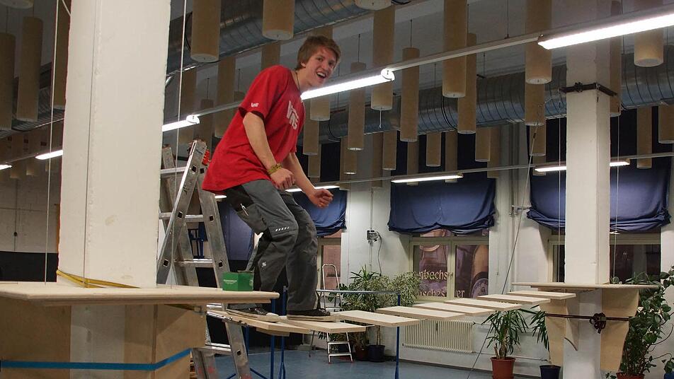 Zwei Tage und Nächste geschuftet Gemeinsam haben Meyer und Lehner zweieinhalb Tage und zwei Nächte geschuftet. Der 20-Jährige liefert die Ideen, dann wird gesägt, gebohrt und geschraubt, bis der Kletterpark Freitagfrüh fertig ist. Als großes Plus erweist sich dabei die Schreiner-Lehre des JUZ-Chefs, der für seinen FSJ-Mitarbeiter einen Nachfolger sucht. "Interessenten können sich bei mir in der Alten Spinnerei melden."