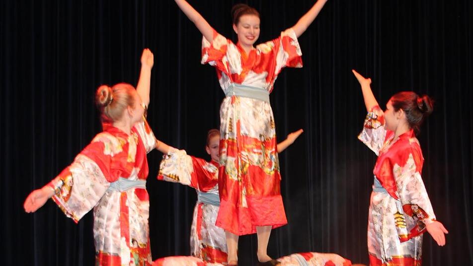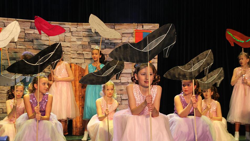 Auf der Bühne wurde ein farbenfrohes Spektakel geboten. Die Mini-Dancer setzten das Märchen Aschenputtel gekonnt  in Szene. Sie hielten Schuhe in die  Höhe, und auch die Schüssel voller Linsen wurde in die sehenswerte Choreographie eingebaut.
