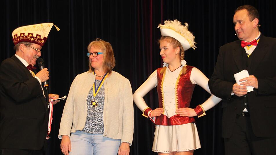 Landrat Klaus Peter Söllner und Kulmbachs Dritter Bürgermeister Frank Wilzok lobten die tolle Jugendarbeit der Showtanzgarde. Benno Friedl vom Fastnachtsverband Franken (FVF) ehrte Tanzmariechen Lea Vogl und Doris Küfner für ihren ehrenamtlichen Einsatz mit dem Verbandsorden.