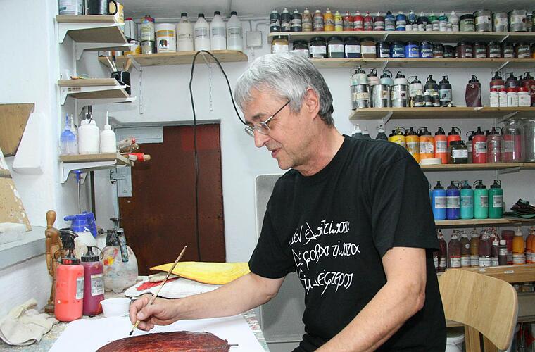 Harald Burger, eigentlich von Beruf Sonderschullehrer, fasziniert mit abstrakten Bildern, die aus Struktur und Farbe bestehen und die ihm europaweit zu Ruhm und Ehre gereichen. Auch in der Steinachtalhalle hat er einige Werke zur Feierstunde ausgestellt. Sogar das Badische Landesmuseum Karlsruhe, das Bauzentrum München, die Sammlung Thomas in Berlin, das Centre D'Culturelles im Staatsministerium in Paris, das Design Studio Paré in Barcelona, aber auch das Catholic Culture Center auf Naxos und namhafte Firmen haben Werke von Burger angekauft, erklärte Landrat Klaus Peter Söllner in seiner Laudatio und verglich den Künstler mit Kandinsky, Mondrian und Malewitsch.